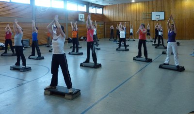 Step Aerobic ist ein effektiver, einfacher und effizienter Weg das Herz- Kreislaufsystem zu trainieren und Kalorien zu verbrennen. Die Kombinationen verschiedener Schritte und Aufbautechniken zu heißen Beats machen einfach Spaß. Die gesamte Bein- und Gesäßmuskulatur wird beansprucht.