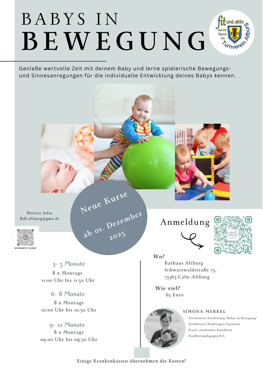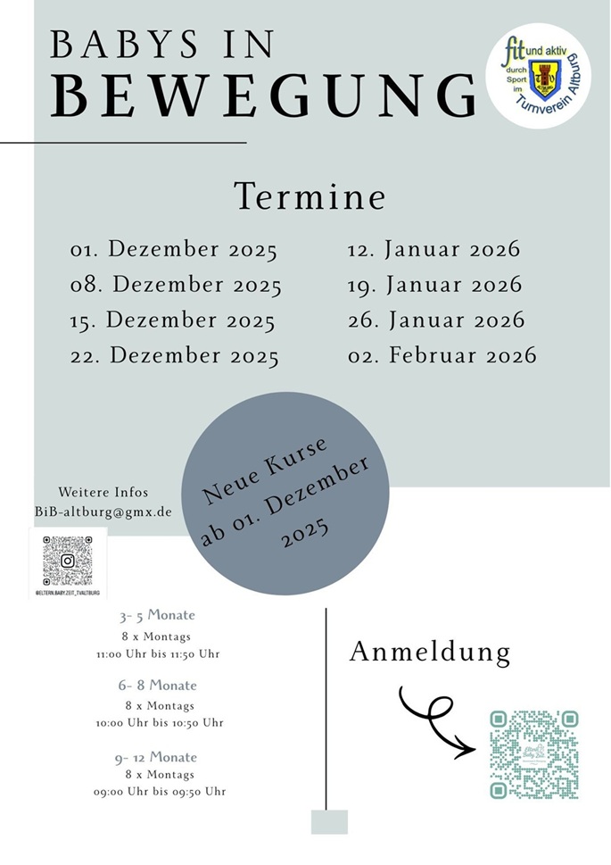 Die aktuellen Kurstermine findest du im Flyer. Für weitere Fragen oder deine Anmeldung kontaktiere mich gerne per Mail: BiB-altburg@gmx.de